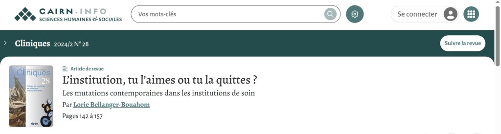 « L’institution, tu l’aimes ou tu la quittes » ; https://shs.cairn.info/article/CLINI_028_0142